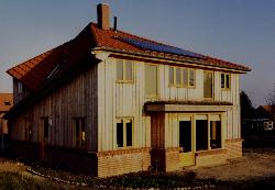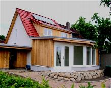 | Energetisch sanierte Doppelhaus- Niedrigenergie-Neubau mit Abluft- hälfte mit Um- und Anbau, 2008 Sohlspeicher, 1997 | |